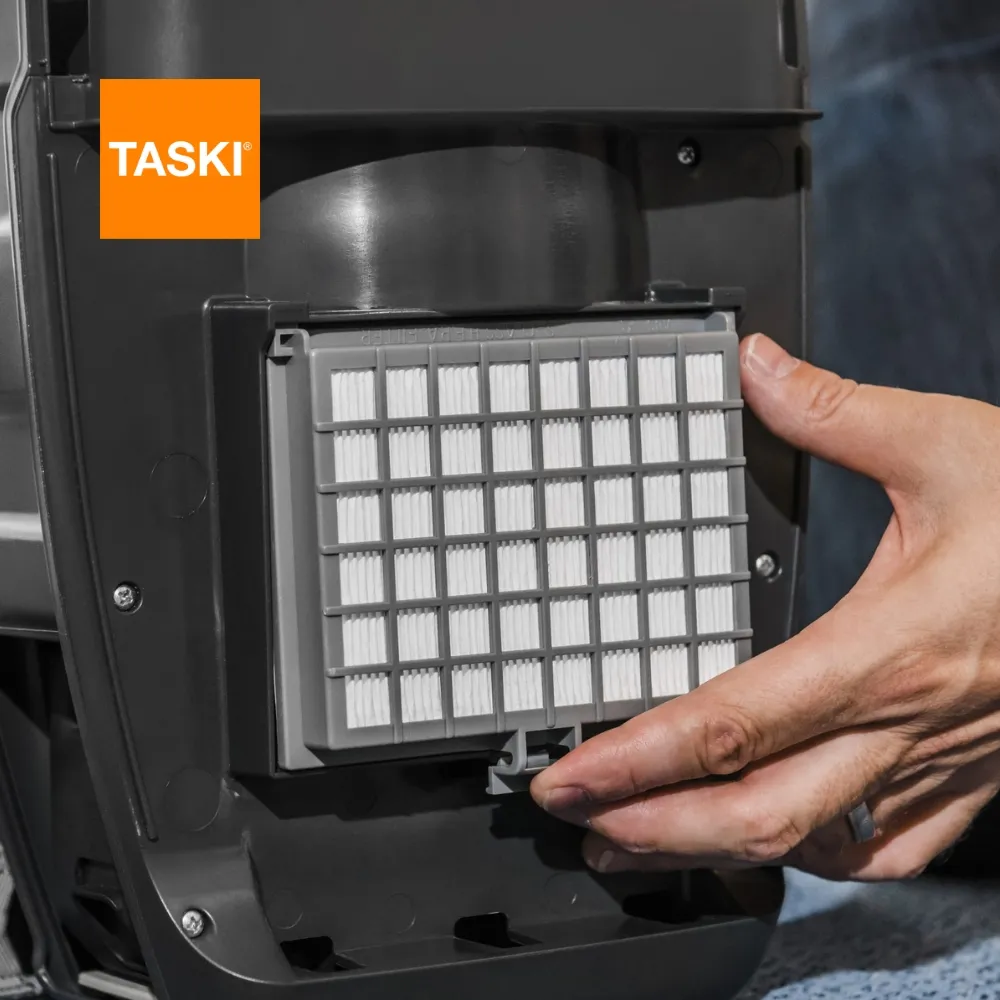 La limpieza de escaleras, ascensores y espacios estrechos requiere equipos que combinen ligereza extrema con potencia de aspiración superior. El TASKI AERO BP revoluciona esta necesidad ofreciendo tres configuraciones especializadas: modelo eléctrico de 700W con 30 L/s de flujo (4.7kg), versión batería estándar de 30 minutos autonomía (5.3kg) y modelo batería PLUS con 60 minutos de operación continua (4.9kg).