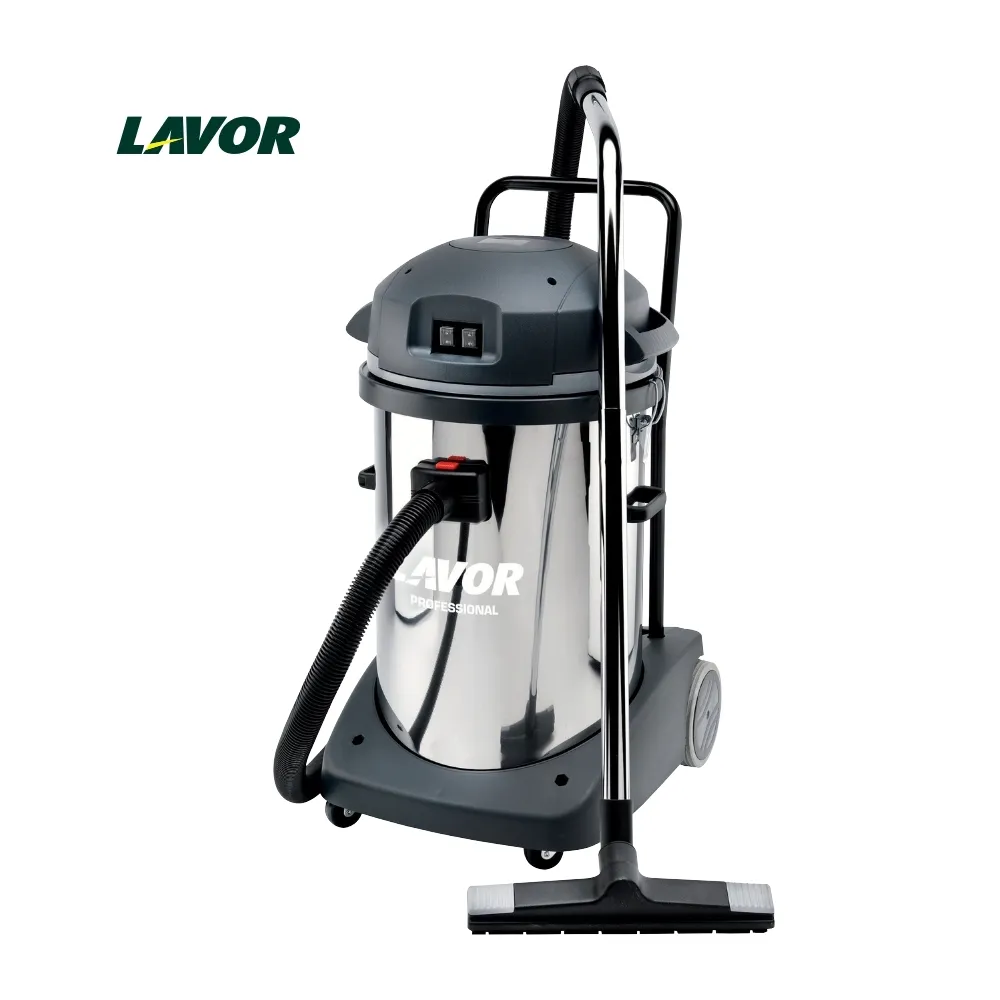 La Lavor Domus IF incorpora dos motores by-pass bi-estadio de 2000 W (2400 W máx.) que entregan 22 kPa de depresión y un flujo de 108 l/s. Su depósito de acero inoxidable AISI 430, 78 L, soporta detergentes alcalinos, salmueras y enjuagues con agua caliente sin deformarse; la manguera de desagüe integrada vacía hasta 48 L de líquido sin desmontar la cabeza.