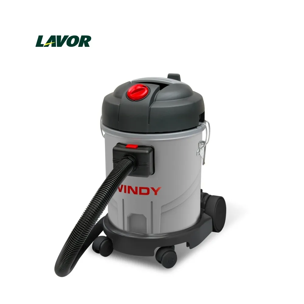 Diseñada para servicios de limpieza en colegios, gimnasios y centros de mantenimiento, la Lavor Windy 120 PF combina aspiración de seco y húmedo en un cuerpo ligero de 8 kg. Su motor by-pass de 1200 W (1400 W máx.) genera 24 kPa de depresión y 65 l/s de caudal, mientras el depósito de polipropileno anti-golpes de 20 L soporta polvo, virutas y derrames sin deformarse.