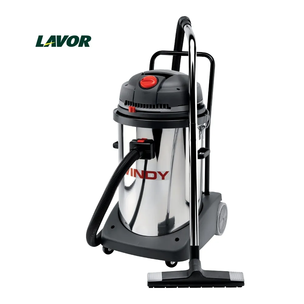 Fabricada en acero inoxidable AISI 430, la Lavor Windy 278 IF soporta detergentes alcalinos, ácidos ligeros y lavados con agua caliente sin deformarse. Sus dos motores by-pass de alta eficiencia (2000 W, 2400 W máx.) generan 22 kPa de depresión y 130 l/s de caudal, aspirando rápidamente lodos, espumas o polvo grueso. El flotador automático detiene la succión al alcanzar 48 L de líquido para proteger las turbinas, y el sistema ON/OFF de limpieza del filtro restablece la depresión sin abrir la carcasa.