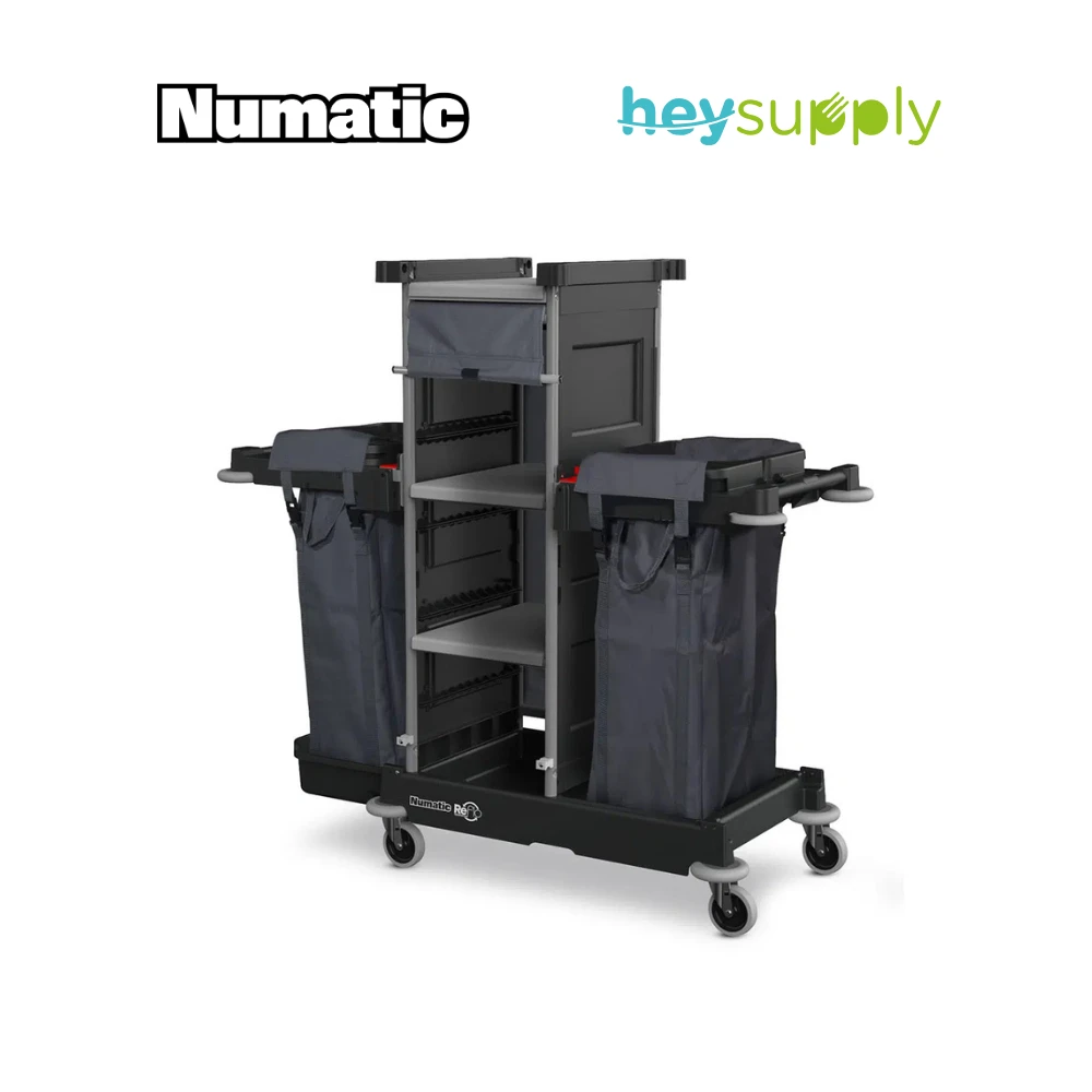 Carro de servicio Numatic NKS2R diseñado para responsables de housekeeping y coordinadores de lavandería en hoteles de tamaño medio-grande, hospitales con alta rotación de ropa, residencias geriátricas de gran capacidad y complejos deportivos que necesitan gestión máxima de ropa sucia con capacidad total 200L, almacenamiento versátil para suministros múltiples y construcción sostenible certificada que garantiza durabilidad superior en ambientes de uso intensivo continuo.