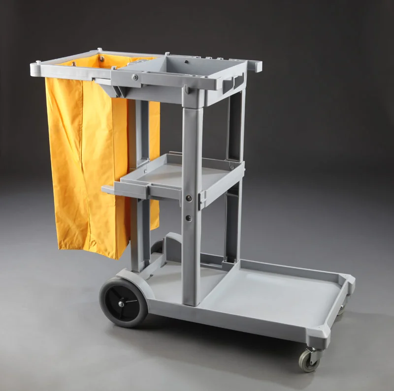 El diseño inerte del material HDPE permite compatibilidad universal con productos químicos de limpieza incluyendo desinfectantes de alto poder antiséptico, mientras la configuración de bandejas escalonadas con inferior 90cm y superiores 40cm optimiza distribución ergonómica de herramientas y productos según frecuencia de uso.