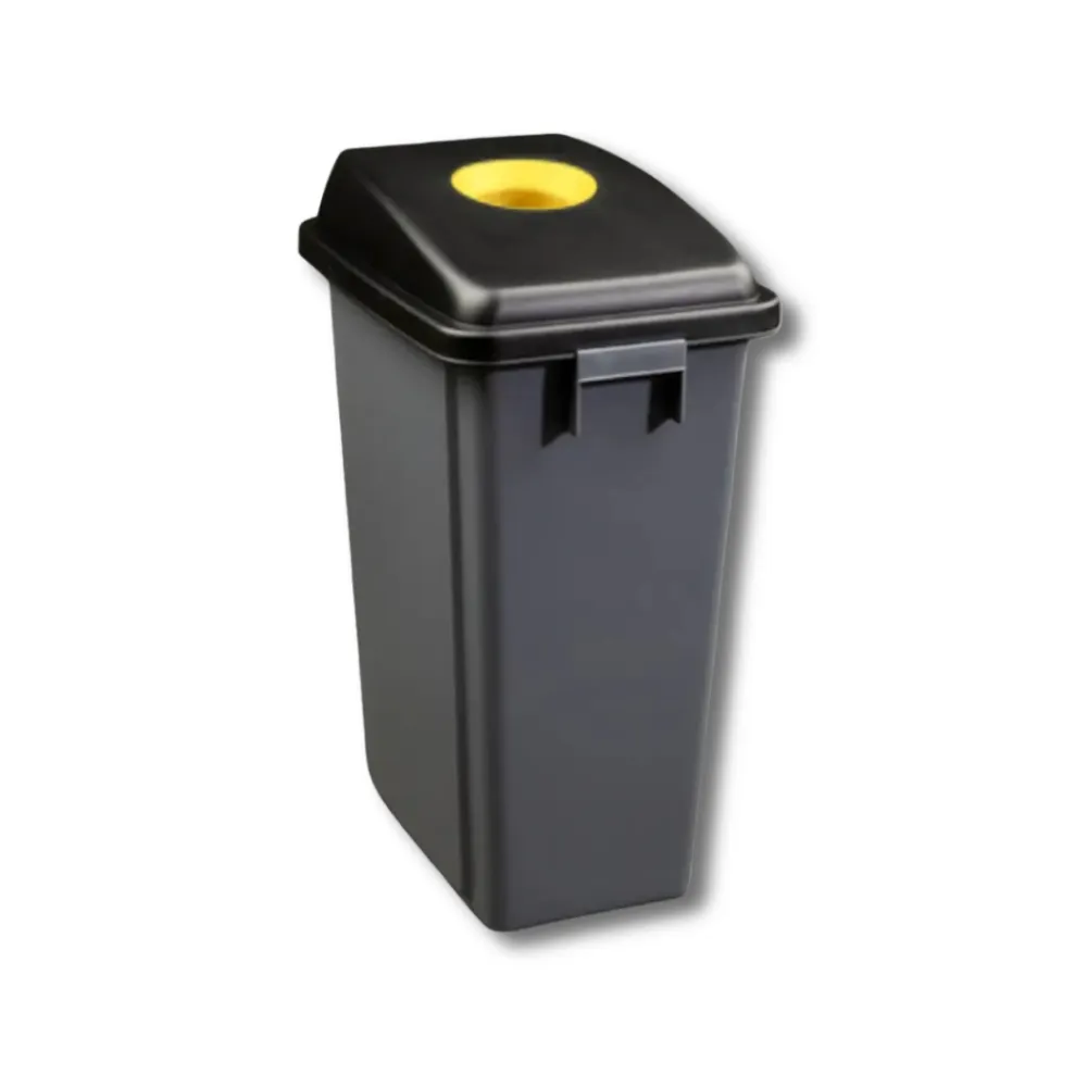 Su capacidad 60L por cubo (180L total) proporciona autonomía extendida para reciclaje selectivo reduciendo frecuencia vaciado, mientras los 2 tipos de boca con colores selectivos facilitan identificación visual inmediata tipo residuo optimizando separación correcta. Las dimensiones 960×330×730mm formato Slim Jim optimizan aprovechamiento espacial mientras el acabado gris con tapas negras y bocas colores coordina estética profesional con funcionalidad reciclaje.