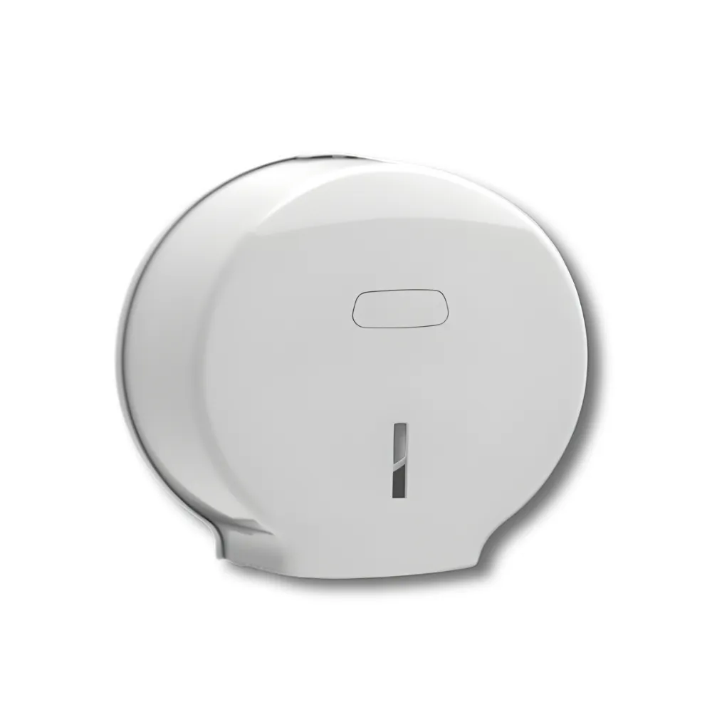 La construcción en ABS con aditivo antiestático proporciona resistencia mecánica al impacto y durabilidad extrema, mientras que el aditivo antiestático repele el polvo reduciendo la acumulación de suciedad superficial que mejora la apariencia limpia del dispensador entre limpiezas y reduce la frecuencia de mantenimiento estético, siendo ideal para instalaciones de alta frecuencia donde la percepción de limpieza es crítica. La capacidad para rollos hasta Ø230mm permite utilizar rollos industriales de gran formato que reducen la frecuencia de reposición hasta 75% comparado con rollos domésticos estándar, siendo crítico en instalaciones con alta afluencia donde el agotamiento del papel genera quejas de usuarios y requiere intervenciones frecuentes del personal de limpieza que aumentan los costes operativos.