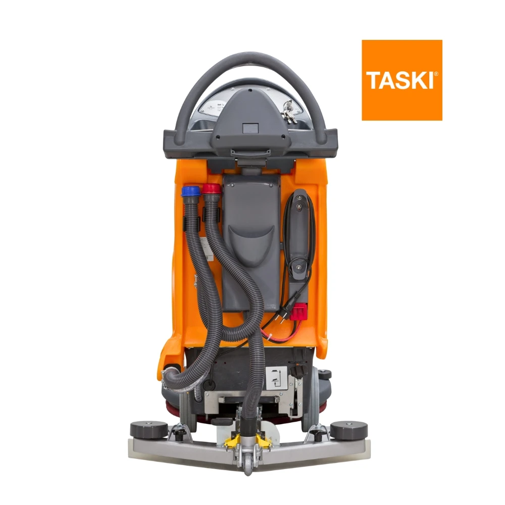 Agilidad y alto rendimiento con fregadora TASKI Swingo 755 B batería 24V, autonomía 2h, doble eje, tanque 40L, sistema IntelliFlow para limpieza eficiente.
