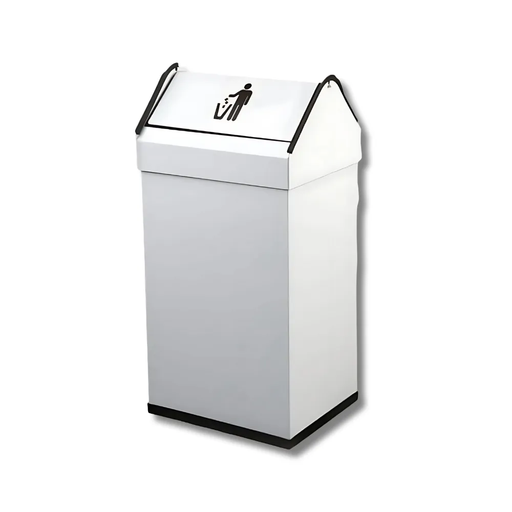 Su capacidad de 40L proporciona autonomía superior para espacios de uso intensivo reduciendo frecuencia de vaciado, mientras las dimensiones rectangulares 320×260×680mm optimizan aprovechamiento del espacio vertical disponible. Los complementos PP negro en fondo y superior facilitan mantenimiento mientras el sistema basculante permite deposición higiénica sin contacto manual directo.