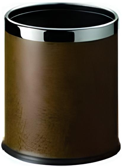 La chapa de acero de 0.8mm con pintura poliéster electrostática proporciona una resistencia excepcional al uso intensivo y facilita el mantenimiento diario. El forro de vinilo de color marrón pegado en el cuerpo exterior aporta la calidez visual elegante mientras protege las zonas de mayor contacto. El aro embellecedor de acero inoxidable ferrítico brillo en el cuerpo exterior aporta el contraste visual profesional mientras protege el borde superior. La base robusta de goma negra en el fondo del cubo interior garantiza la estabilidad del cuerpo exterior.