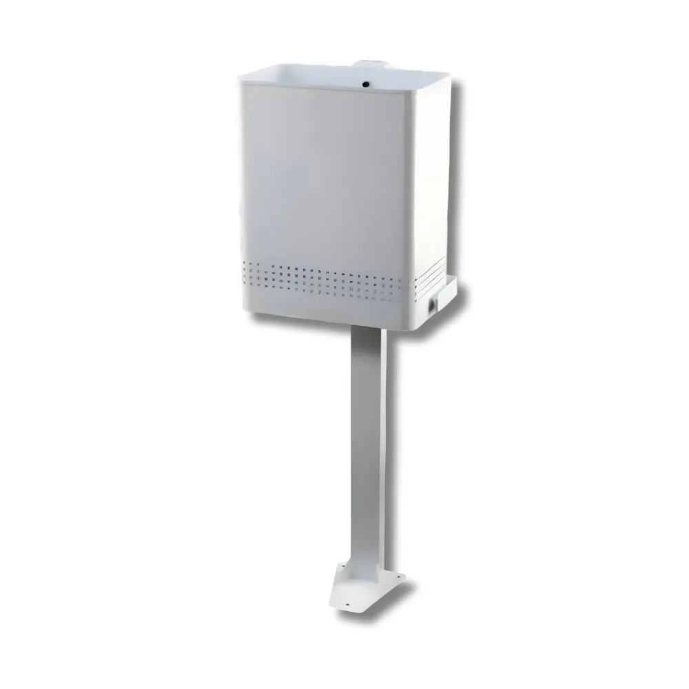 El formato rectangular con capacidad de 35L optimiza la autonomía operativa reduciendo la frecuencia de vaciado en espacios de alto tráfico, mientras el sistema de cierre por llave de cuadradillo garantiza seguridad antivandalismo y acceso controlado para personal autorizado. El peso estructural de 6,735kg con altura de 1000mm proporciona estabilidad operativa manteniendo presencia visual disuasoria.