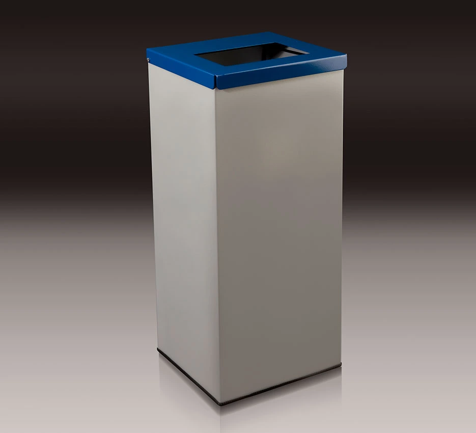La configuración rectangular compacta de 70L con tapa diferenciada por color según tipo de residuo maximiza la eficiencia de clasificación selectiva manteniendo ocupación mínima de suelo. El cuerpo en chapa electrocincada de 1.2mm con acabado plata texturado proporciona resistencia estructural anti-vandálica mientras la tapa reforzada en chapa de 2.0mm garantiza durabilidad extrema en entornos de alto estrés operativo.