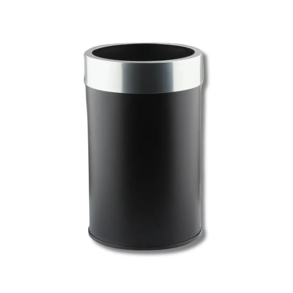 Los espacios profesionales contemporáneos que combinan funcionalidad operativa con estética moderna requieren papeleras que integren elementos cromados premium con acabados contrastantes. La H4116NGC presenta construcción chapa electrocincada 0,8mm con acabado negro y cabezal extraíble cromado con función sujetabolsas integrada, proporcionando 16L capacidad útil (18L volumen total) en formato circular Ø240×390mm con peso de 2,26kg que permite ocultación completa de la bolsa.