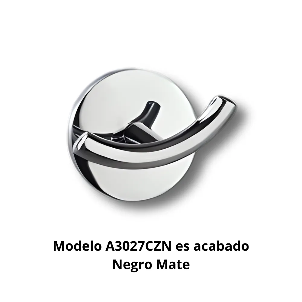 Los responsables de facilities en hoteles y colectividades que buscan perchas dobles compactas para baños necesitan soluciones con construcción en aleación de zinc macizo con acabado negro mate y sistema de prisionero. El modelo A3027CZN presenta una construcción de aleación de zinc macizo, base de anclaje en acero inoxidable, embellecedor en aleación de zinc, acabado negro mate, sistema de prisionero para fácil colocación sobre pared, forma de gancho doble, dimensiones de Ø60×72×50mm, peso de 0,108kg, serie Ancla específicamente diseñado como percha doble pequeña profesional en zinc macizo negro mate para hoteles que demandan elegancia contemporánea con funcionalidad para colgar toallas, albornoces y batas, con resistencia testada superior a 300 horas en cámara de nieblas salinas.