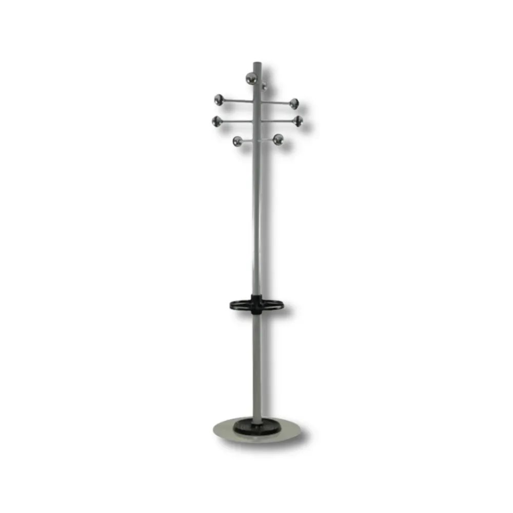Los responsables de facilities en oficinas, recepciones y espacios corporativos que requieren percheros suelo paragüero integrado para organización completa prendas paraguas visitantes necesitan soluciones con doble funcionalidad y acabado anticorrosión manteniendo estética profesional contemporánea. El modelo H8113CHP presenta construcción con estructura tubo acero redondo Ø40mm×1,5mm, colgadores tubo acero Ø12mm×1,0mm, peana chapa acero Ø400mm×3mm, soporte intermedio paraguas, recoge-aguas plástico, pintura electrostática poliéster, ocho colgadores disposición recta bolas cromadas, dimensiones 400×400×1600mm, volumen de 260L, peso de 7,60kg, colores según carta RAL, resistencia oxidación 300+ horas nieblas salinas, presentación tres piezas desmontables específicamente diseñado como perchero paragüero para oficinas.