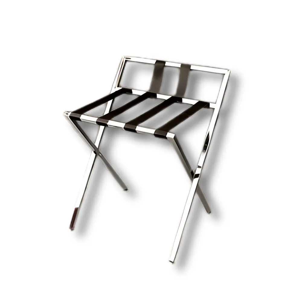- Cadenas hoteleras con identidad visual corporativa que demandan soportes para maletas con acabado lacado personalizable según los colores corporativos de la marca hotelera para mantener coherencia visual en todas las propiedades de la cadena, con el plegado compacto que facilita el almacenamiento centralizado de inventario de reemplazo y distribución entre propiedades, siendo ideal para cadenas hoteleras que buscan estandarización de mobiliario con personalización cromática según la identidad de marca, garantizando reconocimiento visual inmediato de los estándares de calidad de la cadena.