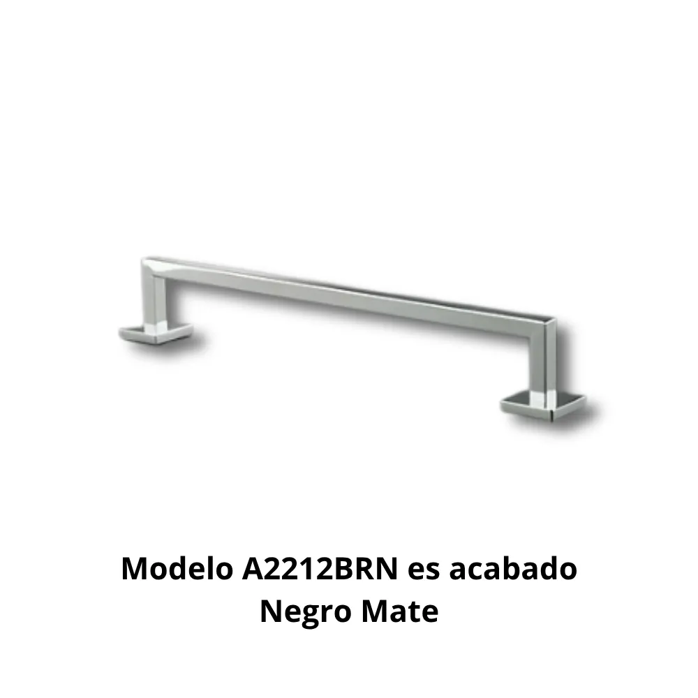 Los responsables de facilities en hoteles, restaurantes y colectividades que buscan un toallero de barra con diseño cuadrado para baños necesitan soluciones con construcción en latón con acabado negro mate, tubo cuadrado y longitud estándar de 450mm. El modelo A2212BRN presenta una construcción de tubo de latón cuadrado 16×16mm con espesor de 1,0mm, base de anclaje en aleación Zamac cincada, embellecedor en latón torneado cuadrado 50×50mm con espesor de 2,0mm, acabado negro mate, doble apoyo a pared, longitud de 450mm, dimensiones totales de 484×75×50mm, peso de 0,505kg, serie Octante específicamente diseñado como toallero profesional de barra estándar con tubo cuadrado en latón negro mate para hoteles y restaurantes que demandan elegancia geométrica contemporánea con máxima estabilidad y resistencia testada superior a 300 horas en cámara de nieblas salinas.